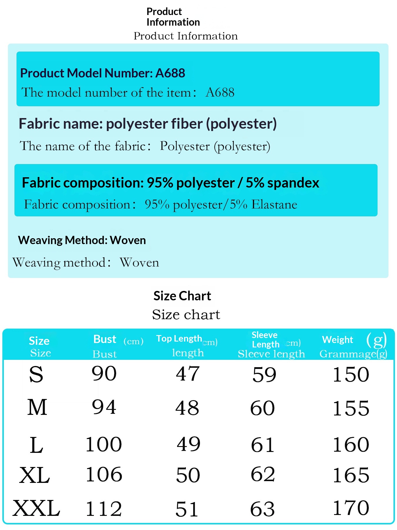 Sizes: S, M, L, XL, XXL